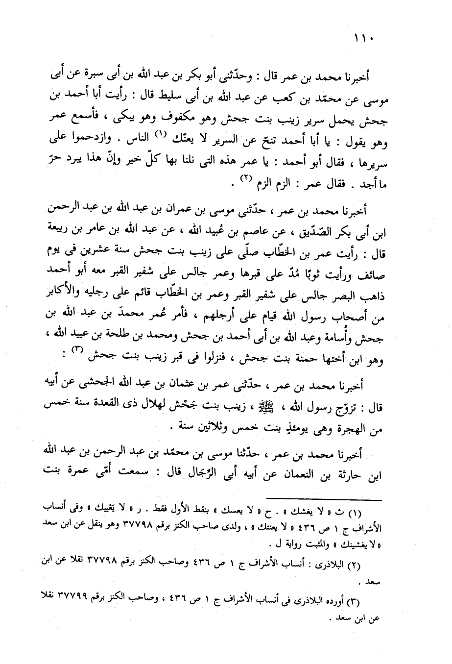 (¬٢) البلاذرى: أنساب الأشراف ج ١ ص ٤٣٦ وصاحب الكنز برقم ٣٧٧٩٨ نقلا عن ابن سعد.