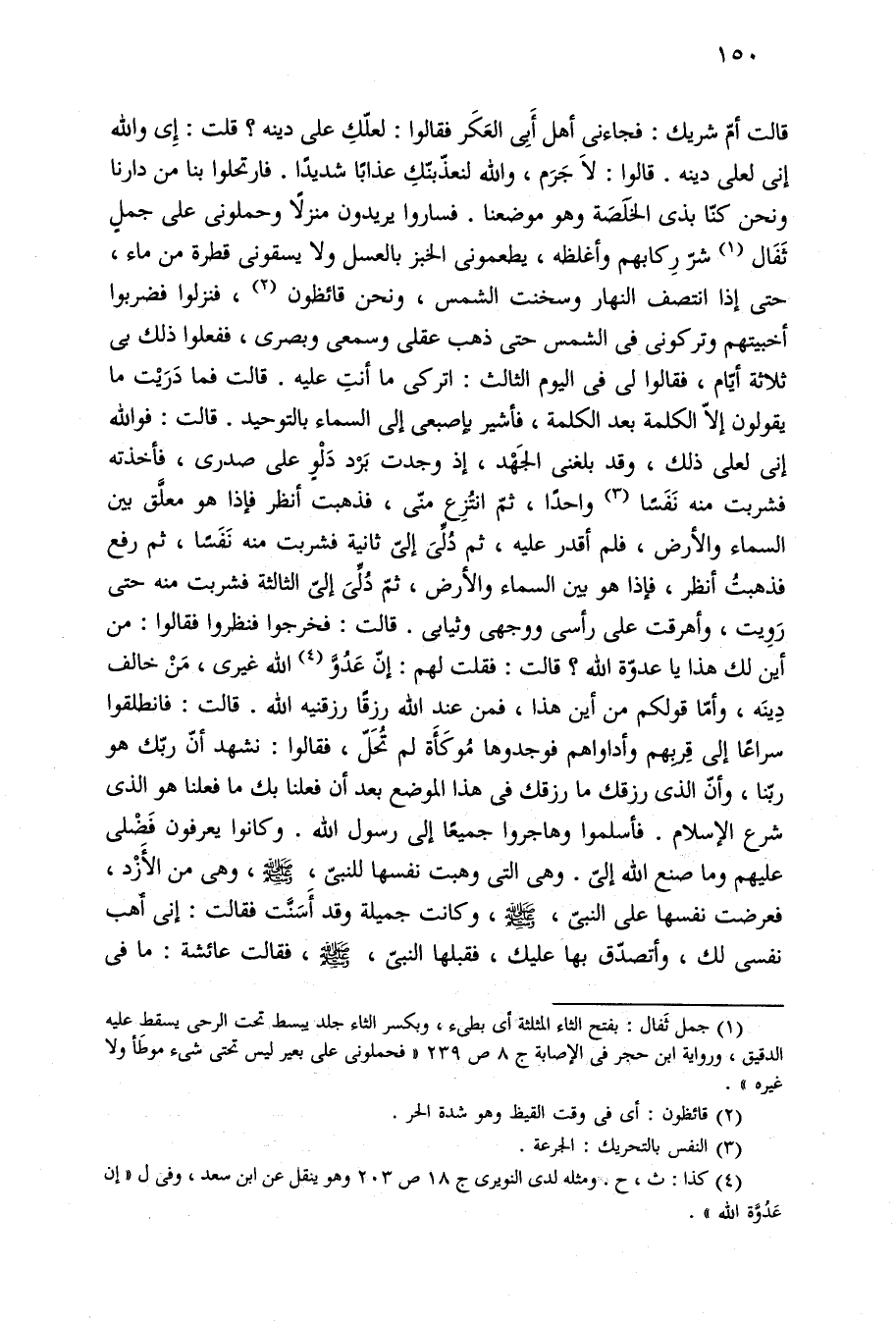 (¬١) جمل ثَفال: بفتح الثاء المثلثة أى بطئ، وبكسر الثاء جلد يبسط تحت الرحى يسقط عليه الدقيق، ورواية ابن حجر في الإصابة ج ٨ ص ٢٣٩ "فحملونى على بعير ليس تحتى شئ موطَأ ولا غيره".