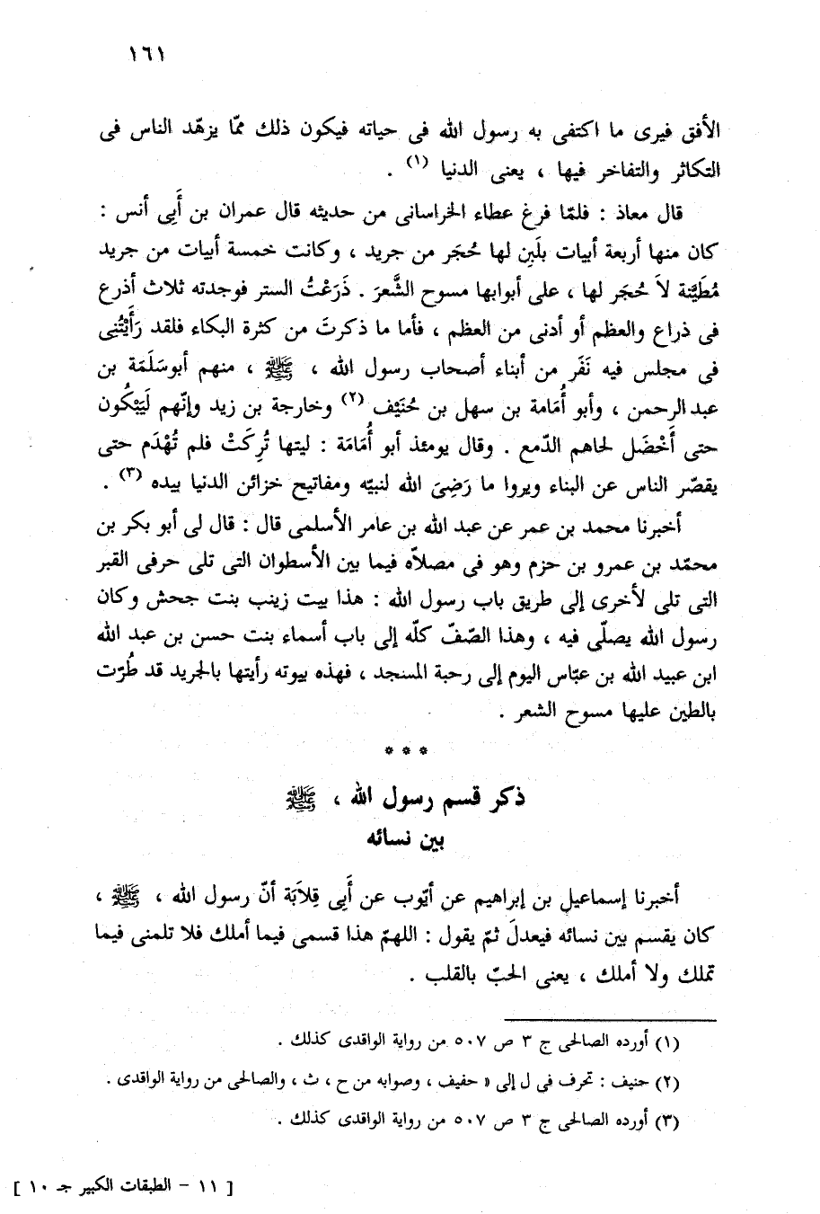 أخبرنا إسماعيل بن إبراهيم عن أيّوب عن أَبِى قِلَابَة أنّ رسول الله، -صلى الله عليه وسلم-، كان يقسم بين نسائه فيعدلَ ثمّ يقول: اللهمّ هذا قسمى فيما أملك فلا تلمنى فيما تملك ولا أملك، يعنى الحبّ بالقلب.