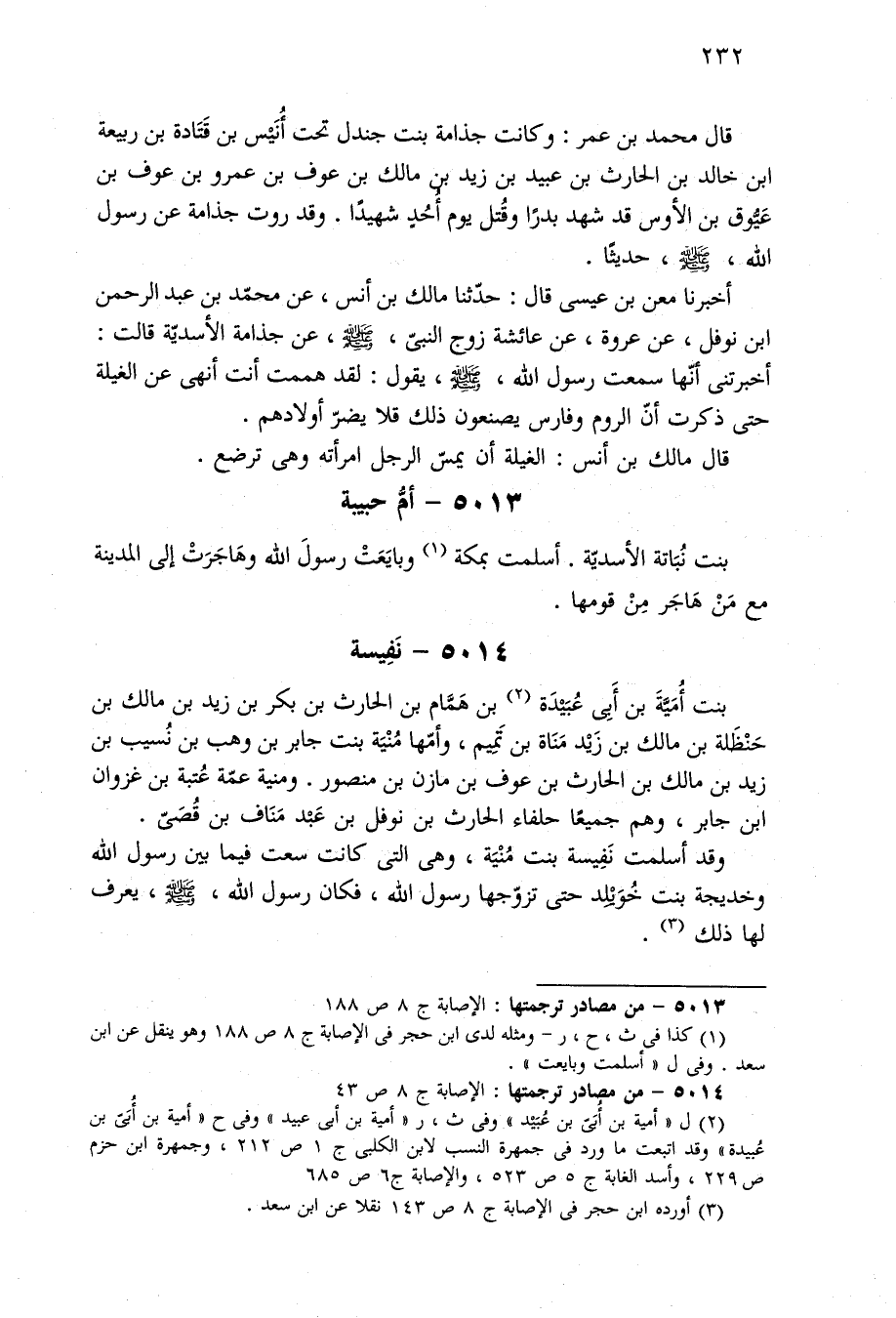 ٥٠١٤ - من مصادر ترجمتها: الإصابة ج ٨ ص ٤٣