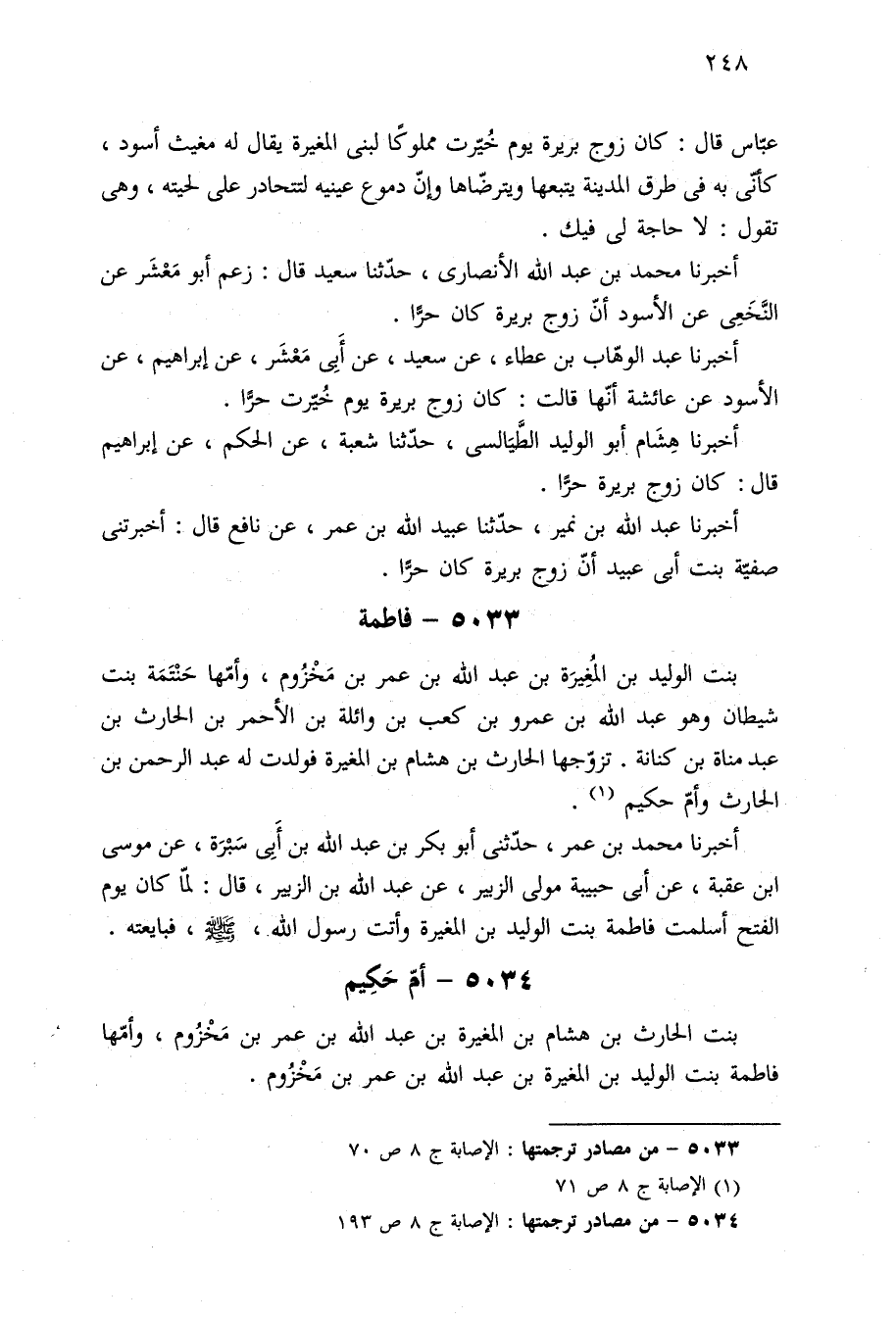 ٥٠٣٣ - من مصادر ترجمتها: الإصابة ج ٨ ص ٧٠.