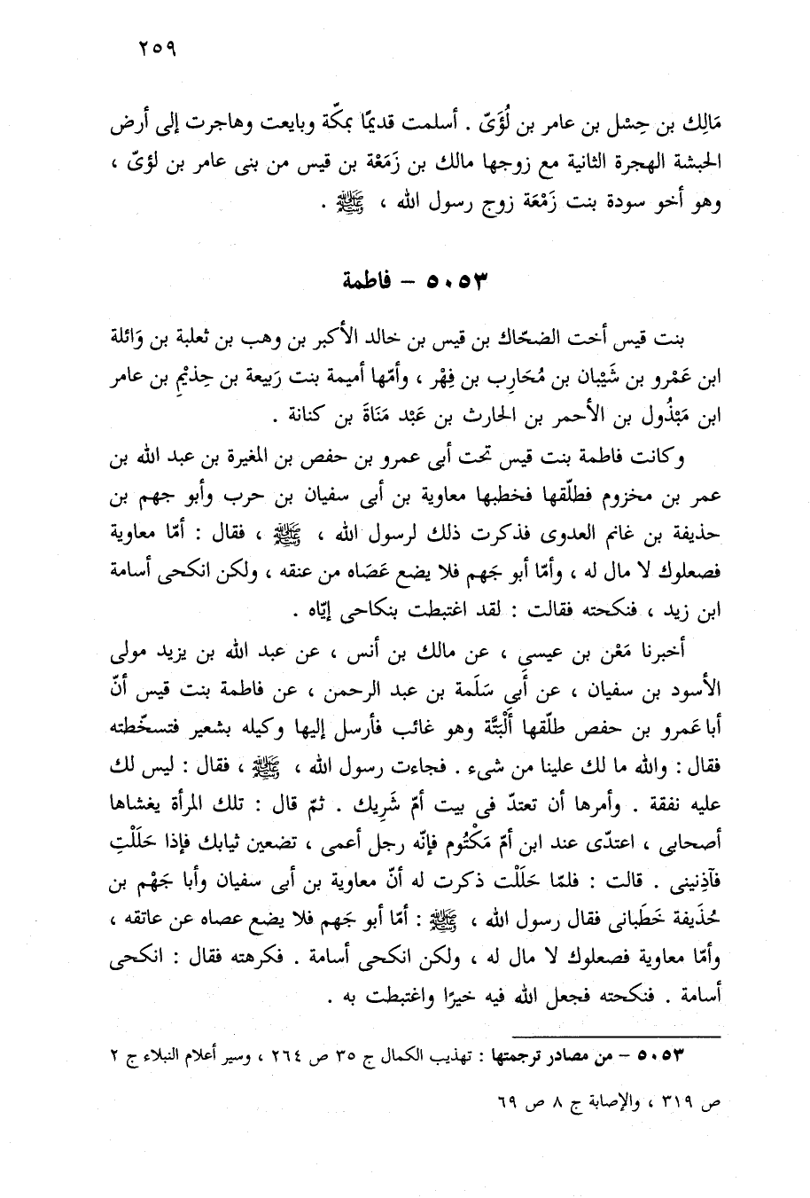 ٥٠٥٣ - من مصادر ترجمتها: تهذيب الكمال ج ٣٥ ص ٢٦٤، وسير أعلام النبلاء ج ٢ ص ٣١٩، والإصابة ٨ ص ٦٩.