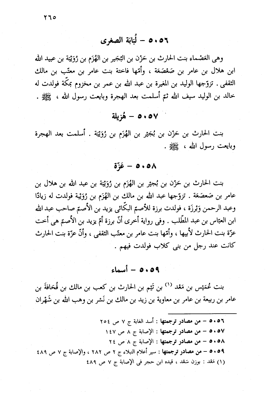 ٥٠٥٦ - من مصادر ترجمتها: أسد الغابة ج ٧ ص ٢٥٤
