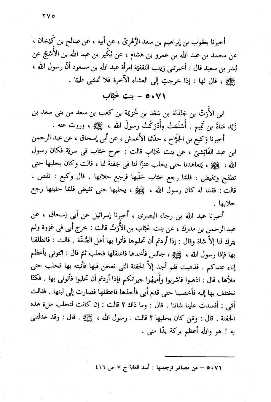 ٥٠٧١ - من مصادر ترجمتها: أسد الغابة ج ٧ ص ٤١٦.