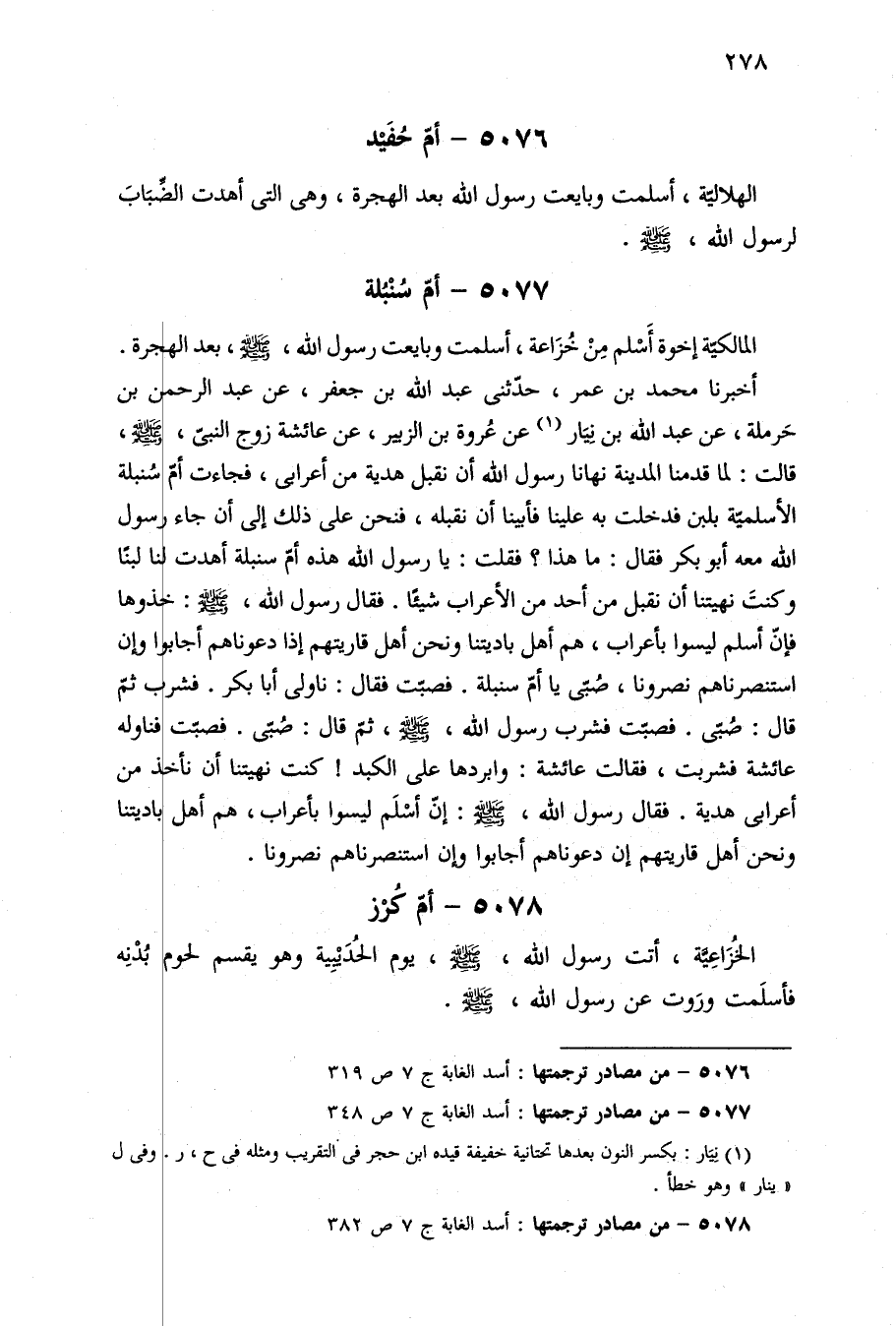 ٥٠٧٧ - من مصادر ترجمتها: أسد الغابة ج ٧ ص ٣٤٨.