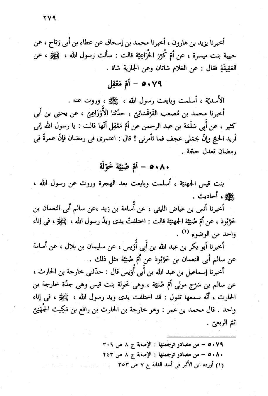 ٥٠٨٠ - من مصادر ترجمتها: الإصابة ج ٨ ص ٢٤٣.