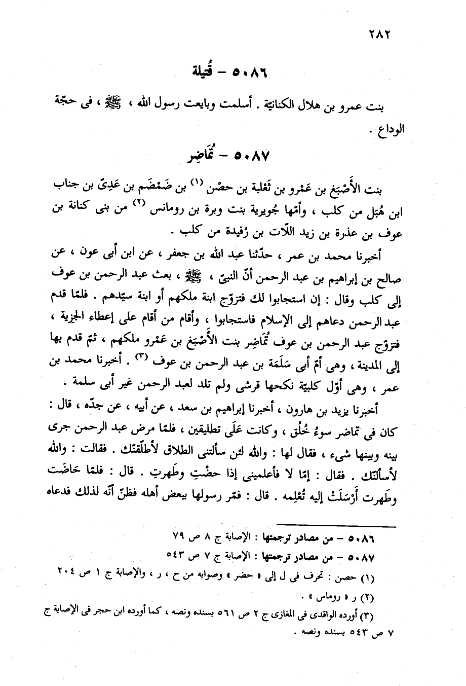٥٠٨٧ - من مصادر ترجمتها: الإصابة ج ٧ ص ٥٤٣