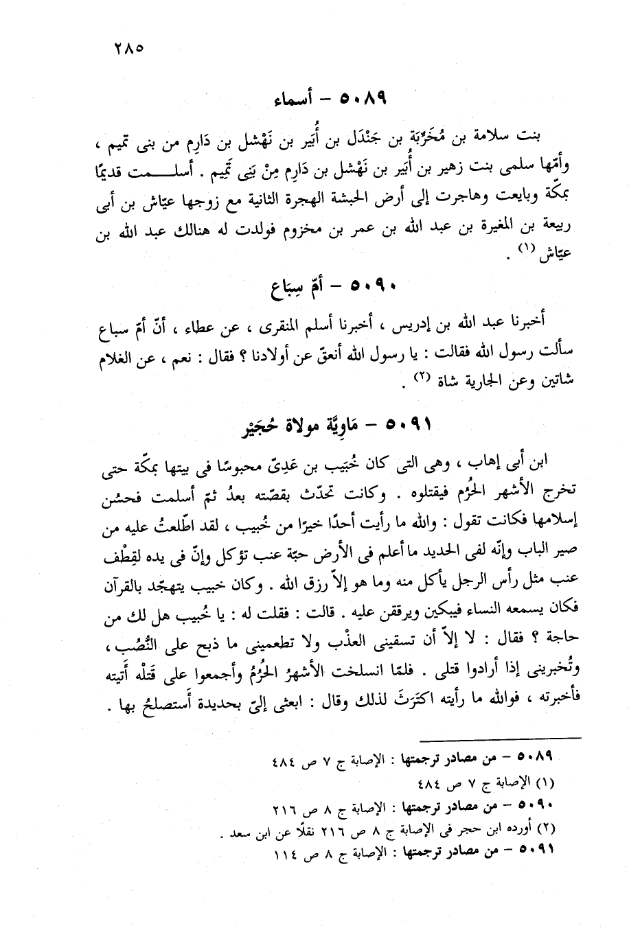 ٥٠٨٩ - من مصادر ترجمتها: الإصابة ج ٧ ص ٤٨٤