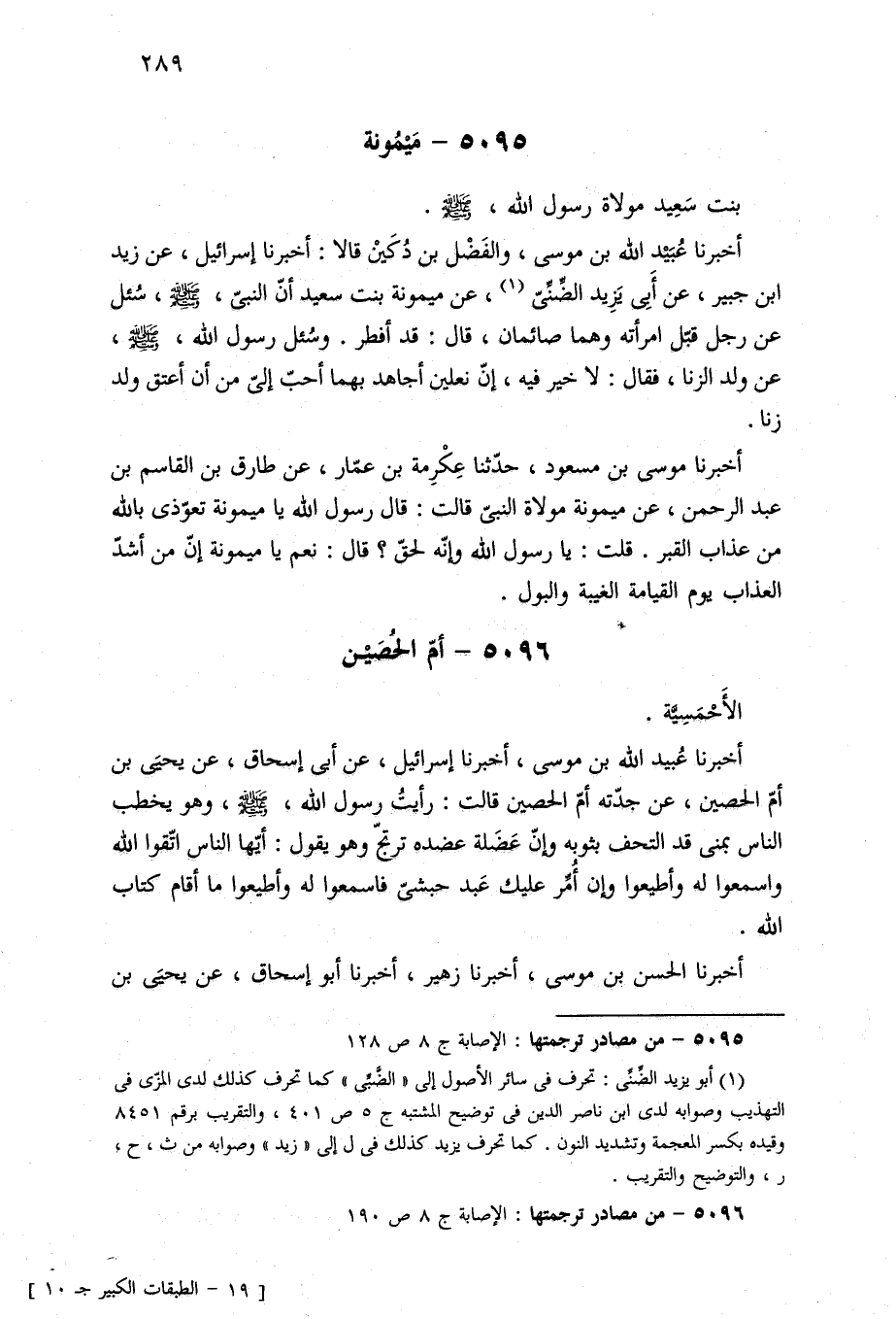 ٥٠٩٥ - من مصادر ترجمتها: الإصابة ج ٨ ص ١٢٨.