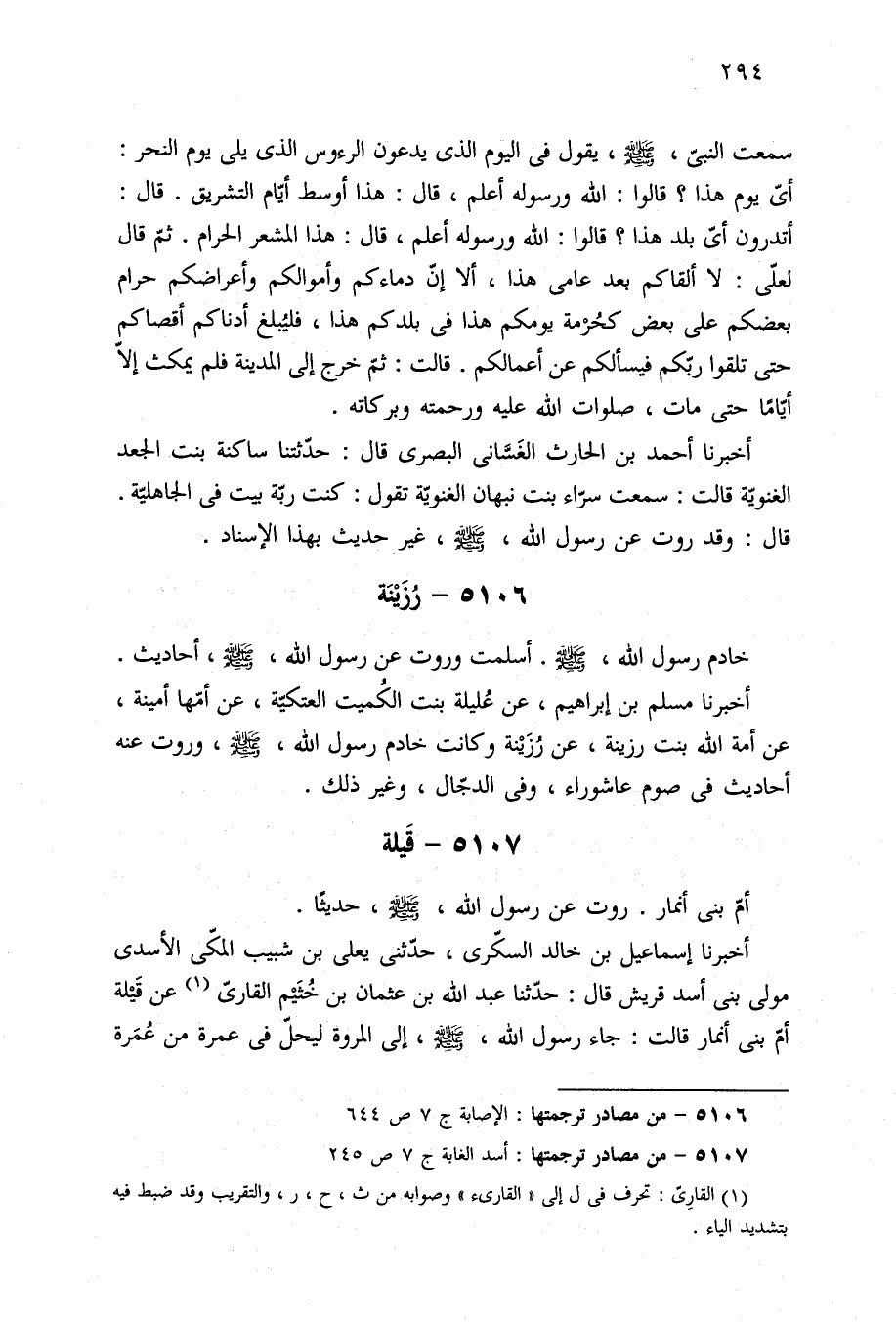 ٥١٠٦ - من مصادر ترجمتها: الإصابة ج ٧ ص ٦٤٤