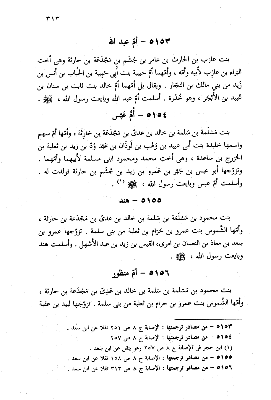 ٥١٥٤ - من مصادر ترجمتها: الإصابة ج ٨ ص ٢٥٧
