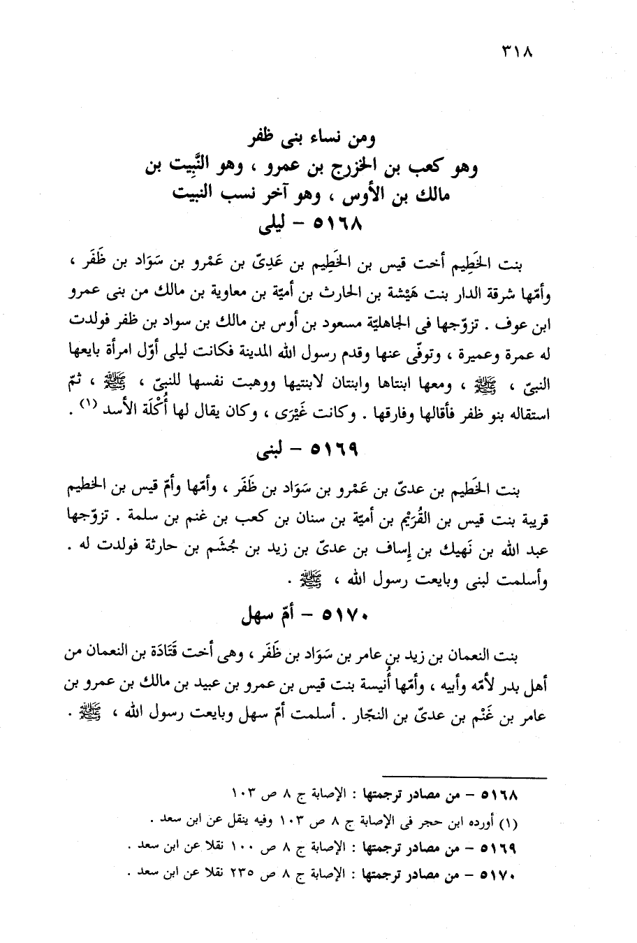 ٥١٦٨ - من مصادر ترجمتها: الإصابة ج ٨ ص ١٠٣