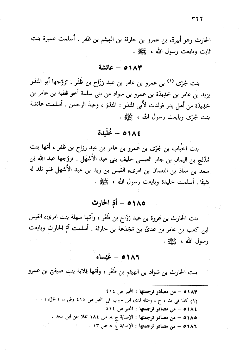 ٥١٨٦ - من مصادر ترجمتها: الإصابة ج ٨ ص ٤٣.