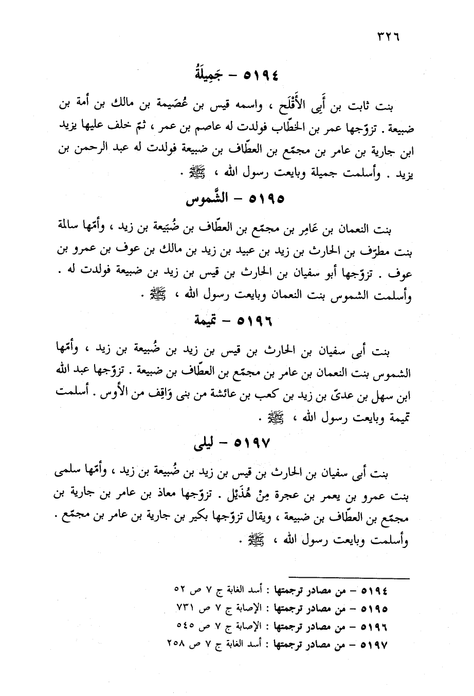 ٥١٩٦ - من مصادر ترجمتها: الإصابة ج ٧ ص ٥٤٥