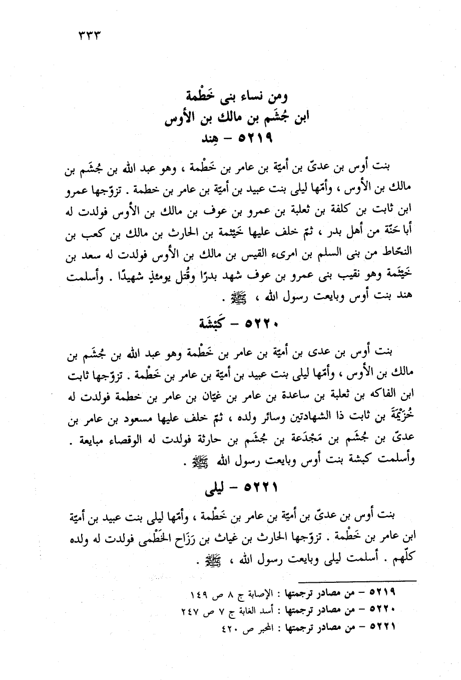 ٥٢٢٠ - من مصادر ترجمتها: أسد الغابة ج ٧ ص ٢٤٧