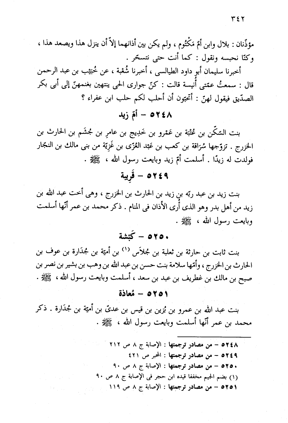 ٥٢٥٠ - من مصادر ترجمتها: الإصابة ج ٨ ص ٩٠