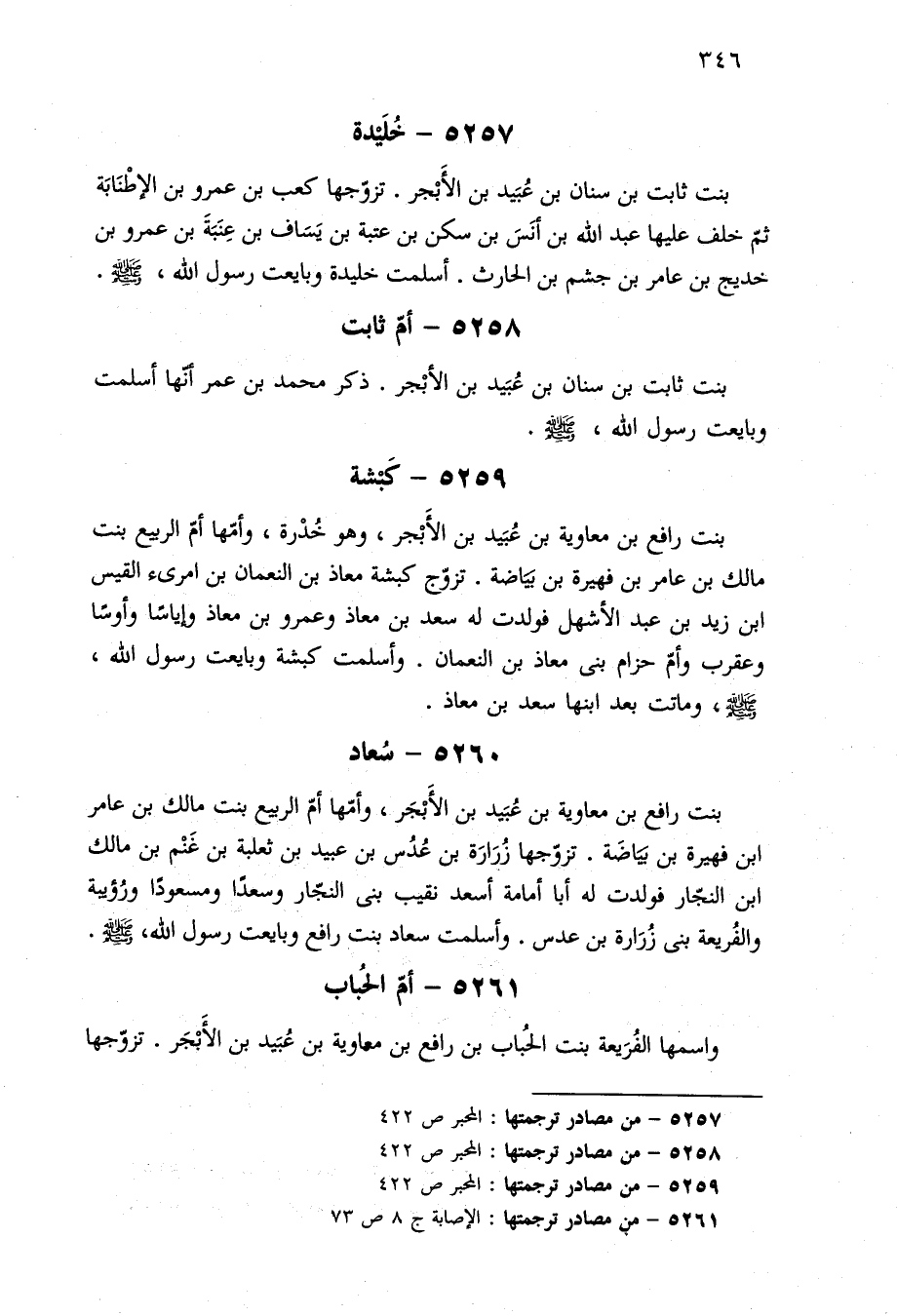 ٥٢٦١ - من مصادر ترجمتها: الإصابة ج ٨ ص ٧٣
