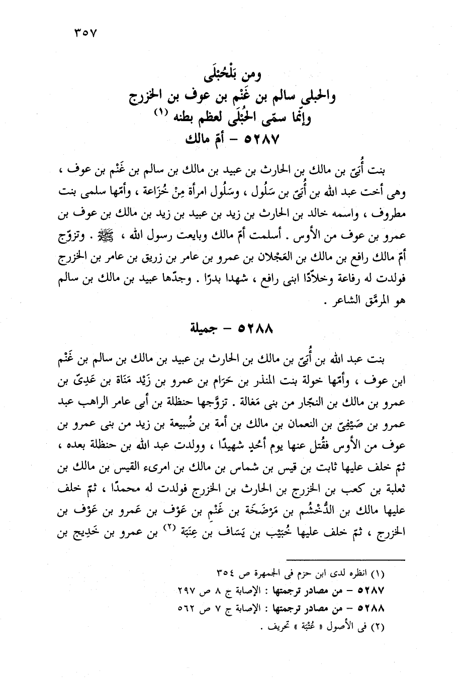 ٥٢٨٨ - من مصادر ترجمتها: الإصابة ج ٧ ص ٥٦٢