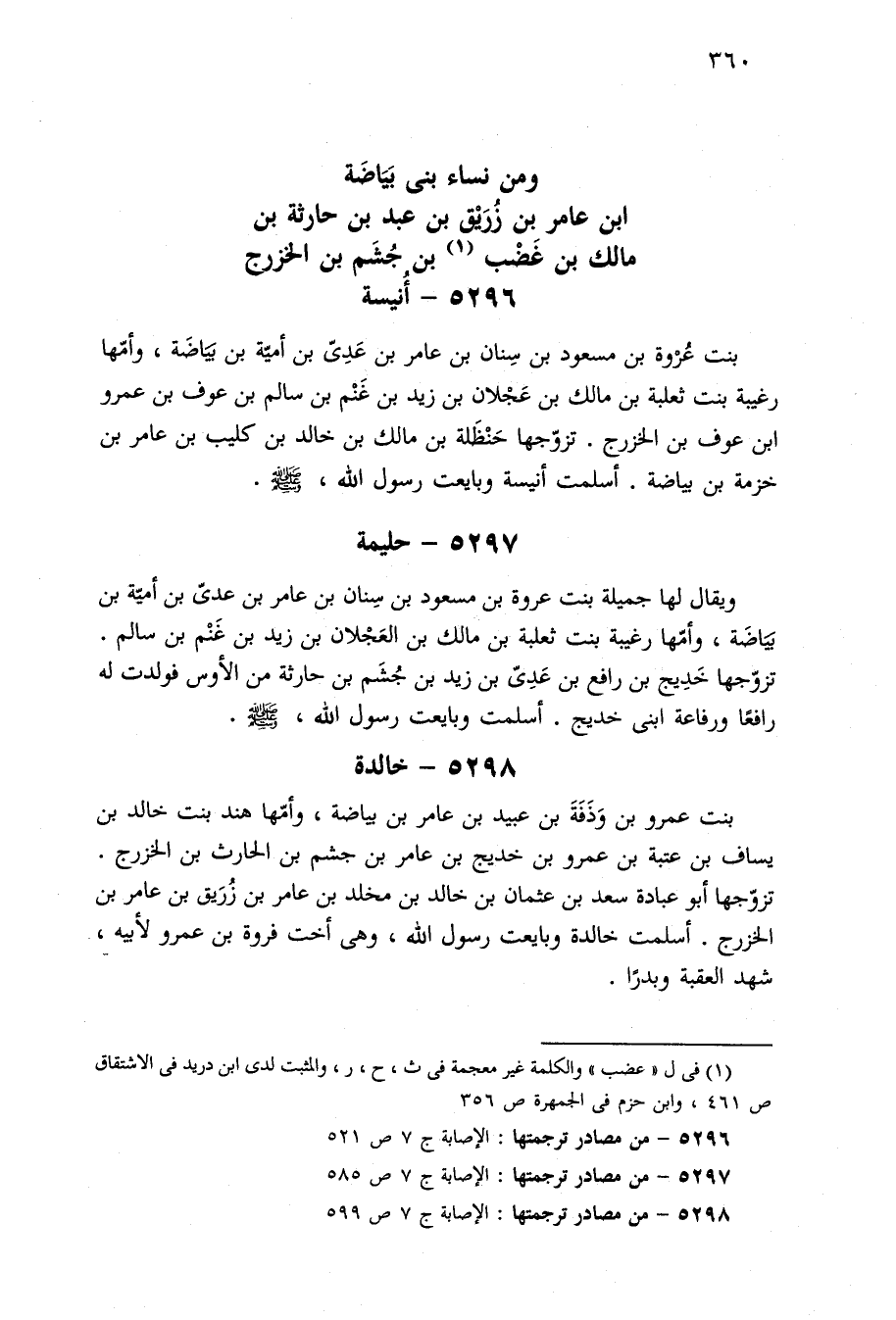 ٥٢٩٦ - من مصادر ترجمتها: الإصابة ج ٧ ص ٥٢١