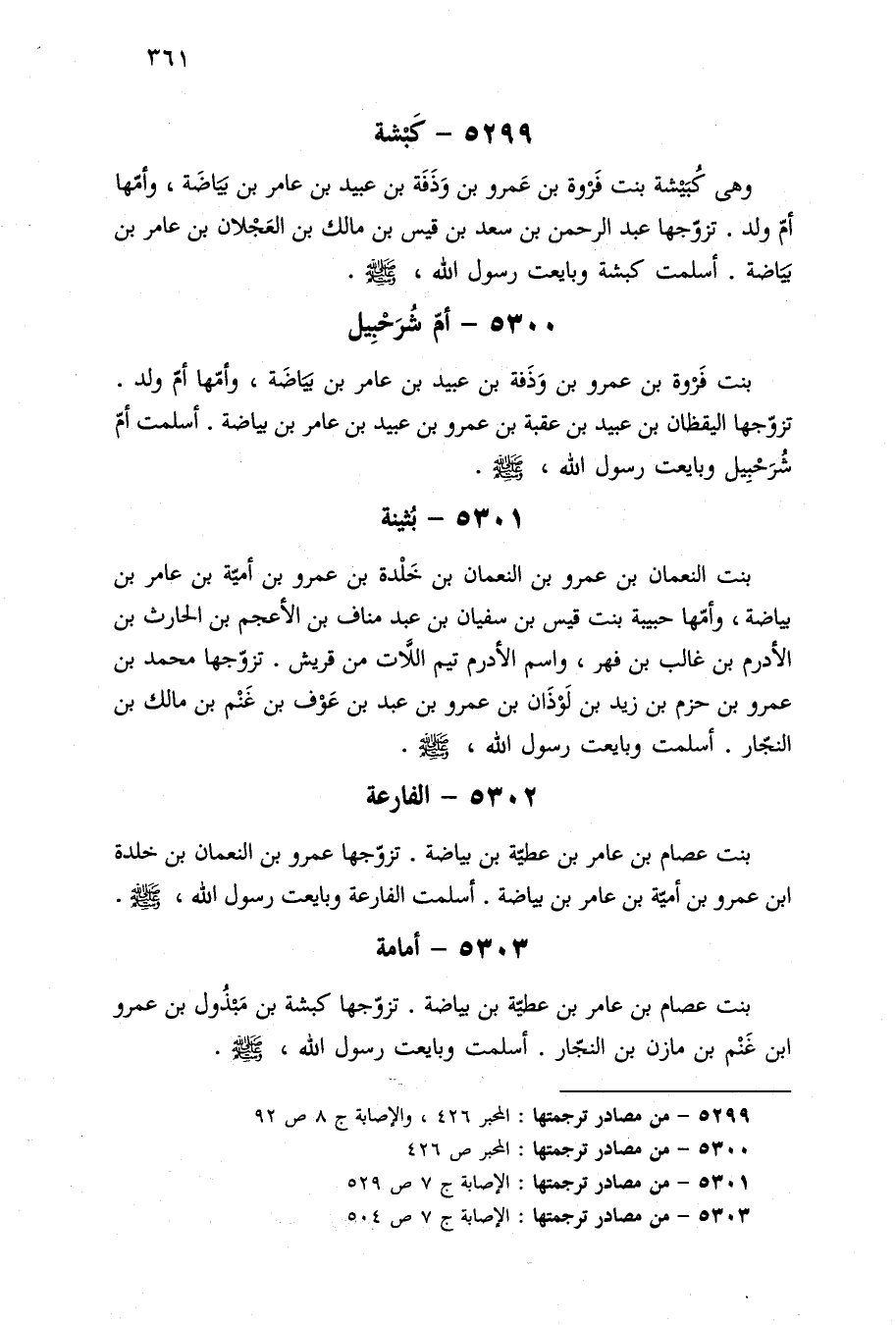 ٥٣٠٣ - من مصادر ترجمتها: الإصابة ج ٧ ص ٥٠٤
