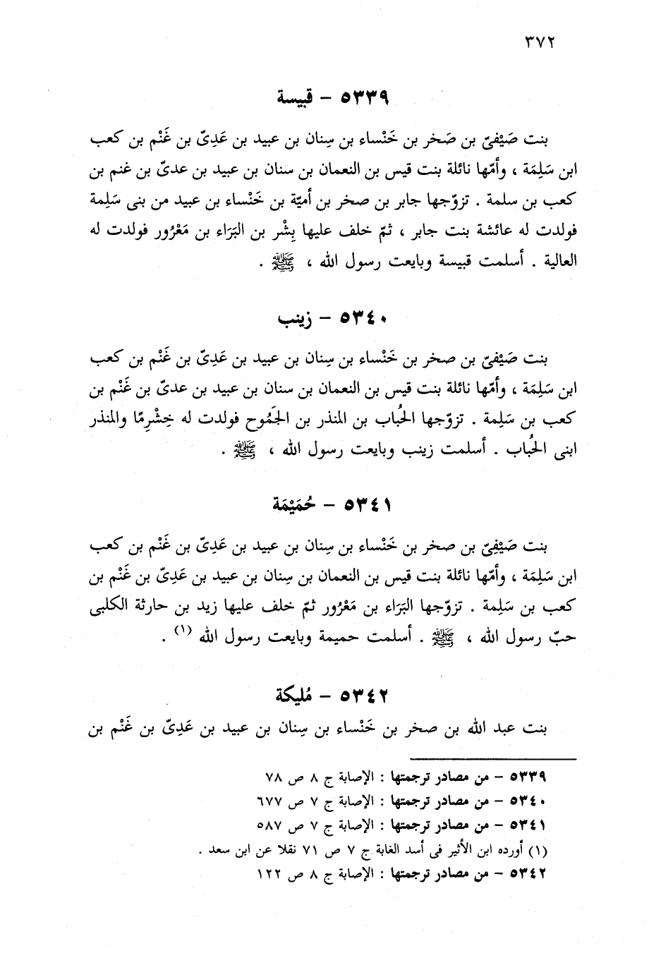 ٥٣٤٠ - من مصادر ترجمتها: الإصابة ج ٧ ص ٦٧٧