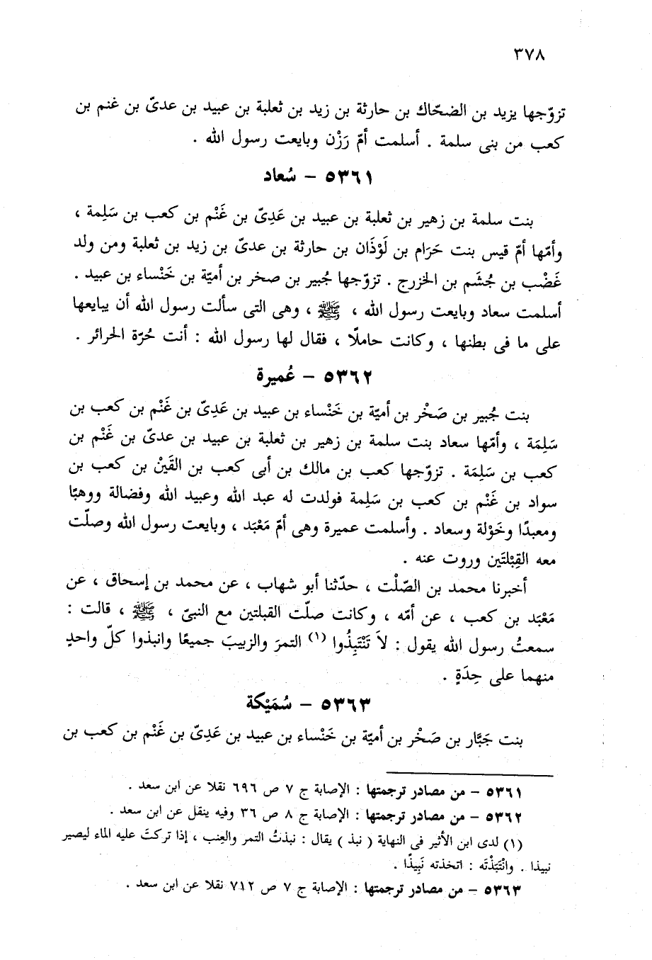 ٥٣٦٣ - من مصادر ترجمتها: الإصابة ج ٧ ص ١٢ - ٧ نقلا عن ابن سعد.