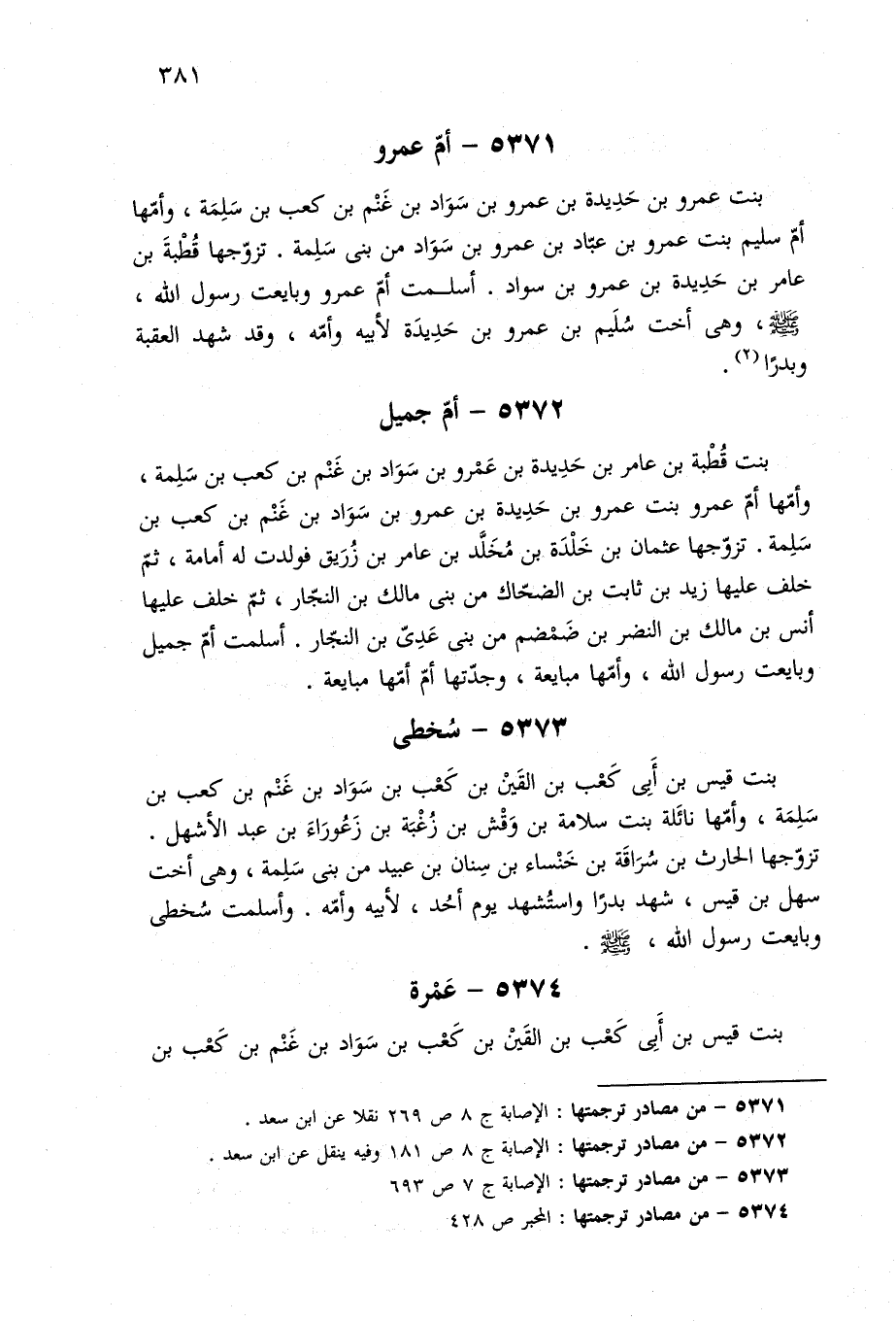 ٥٣٧٣ - من مصادر ترجمتها: الإصابة ج ٧ ص ٦٩٣