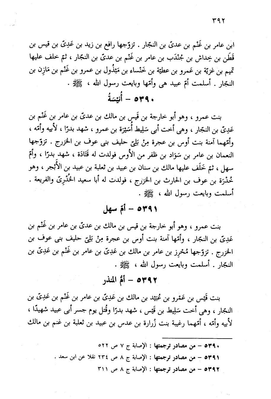 ٥٣٩٢ - من مصادر ترجمتها: الإصابة ج ٨ ص ٣١١