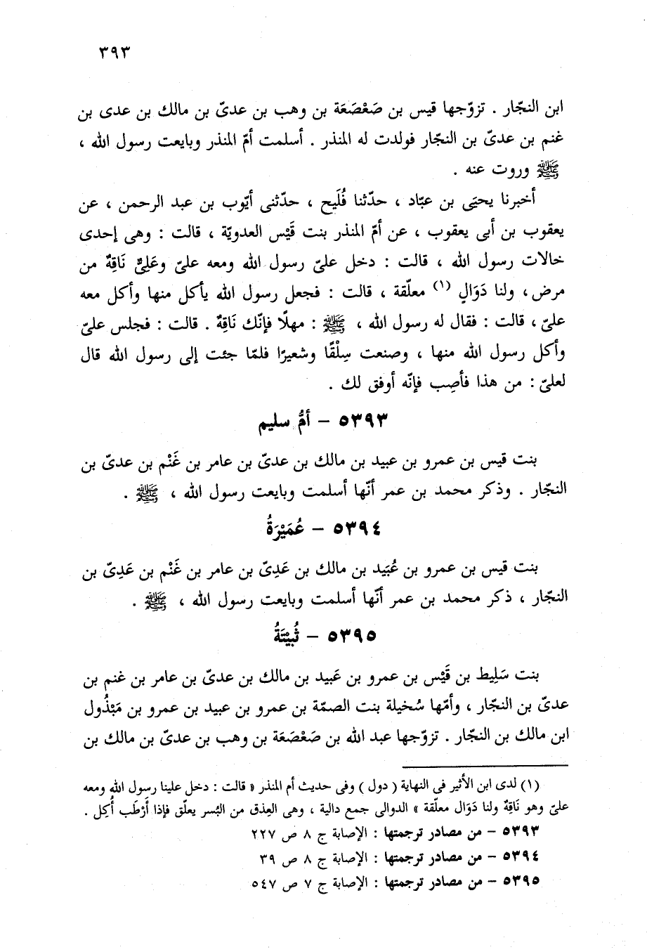 ٥٣٩٣ - من مصادر ترجمتها: الإصابة ج ٨ ص ٢٢٧