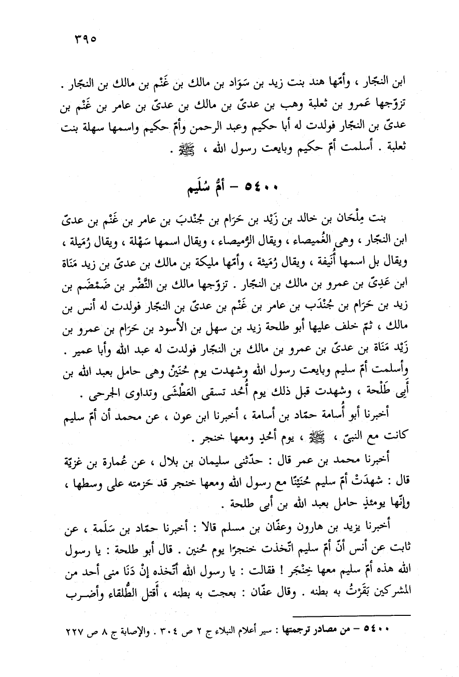 ٥٤٠٠ - من مصادر ترجمتها: سير أعلام النبلاء ج ٢ ص ٣٠٤. والإصابة ج ٨ ص ٢٢٧.