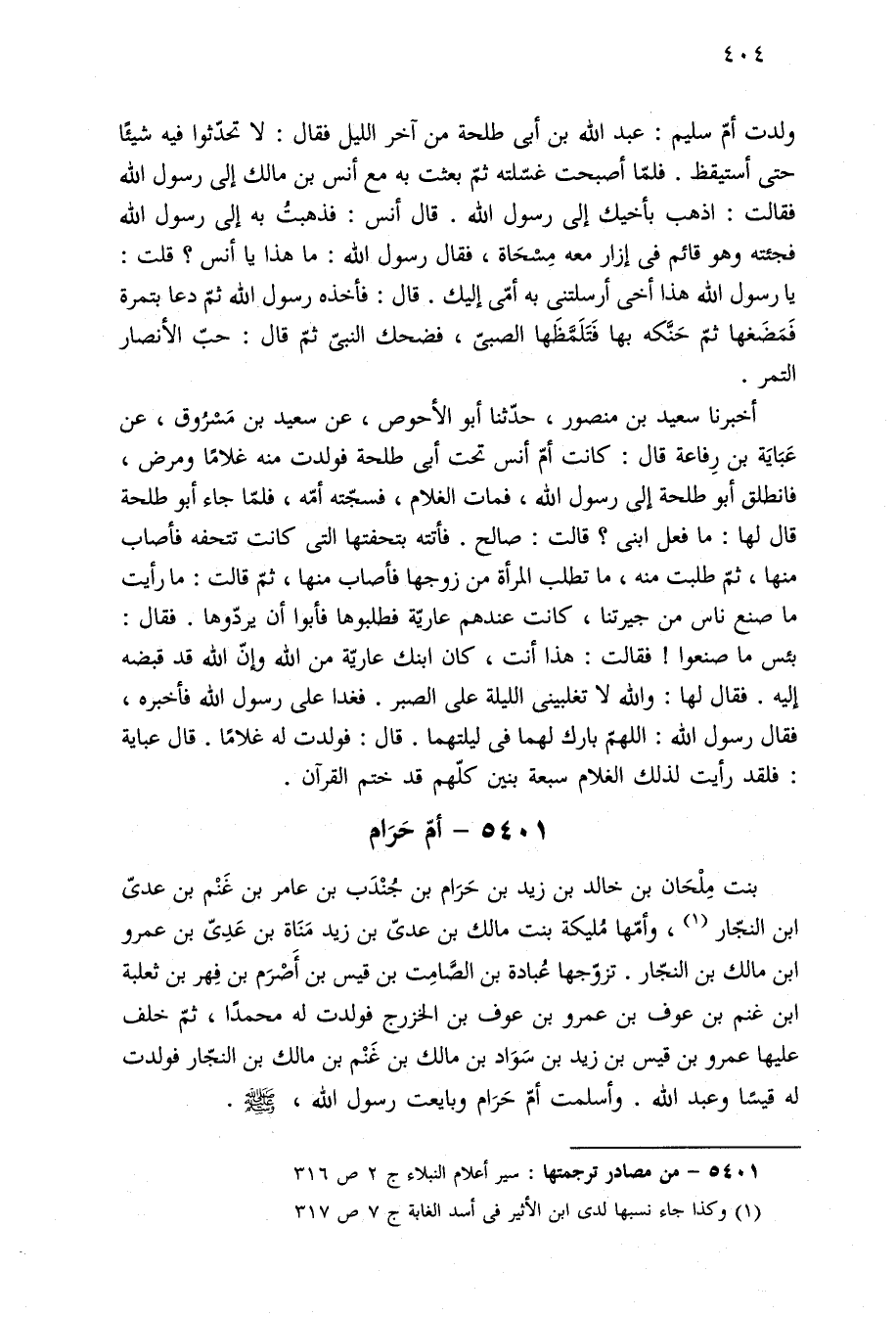 ٥٤٠١ - من مصادر ترجمتها: سير أعلام النبلاء ج ٢ ص ٣١٦.