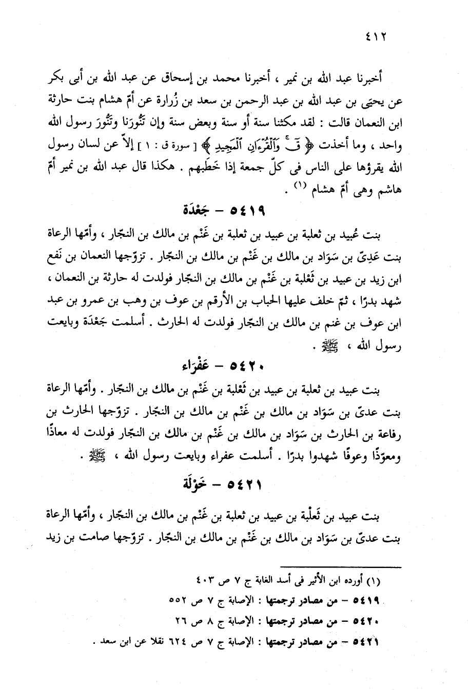 ٥٤٢٠ - من مصادر ترجمتها: الإصابة ج ٨ ص ٢٦