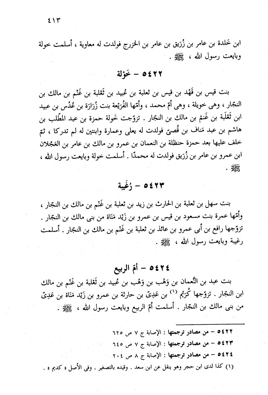 ٥٤٢٣ - من مصادر ترجمتها: الإصابة ج ٧ ص ٦٤٥