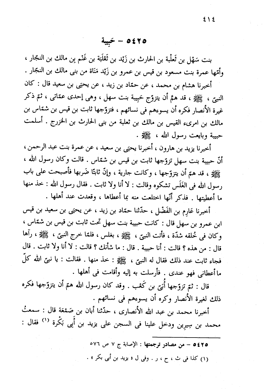 ٥٤٢٥ - من مصادر ترجمتها: الإصابة ج ٧ ص ٥٧٦
