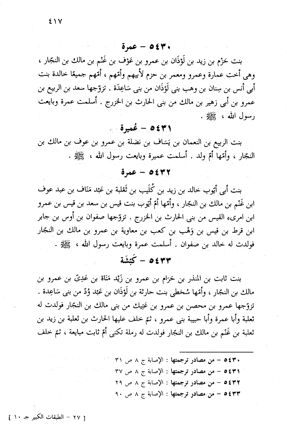 ٥٤٣٣ - من مصادر ترجمتها: الإصابة ج ٨ ص ٩٠
