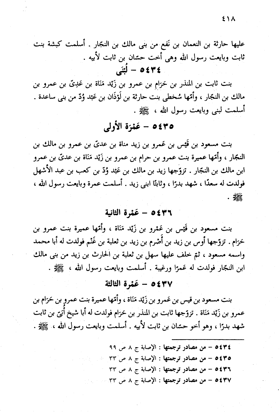 ٥٤٣٤ - من مصادر ترجمتها: الإصابة ج ٨ ص ٩٩