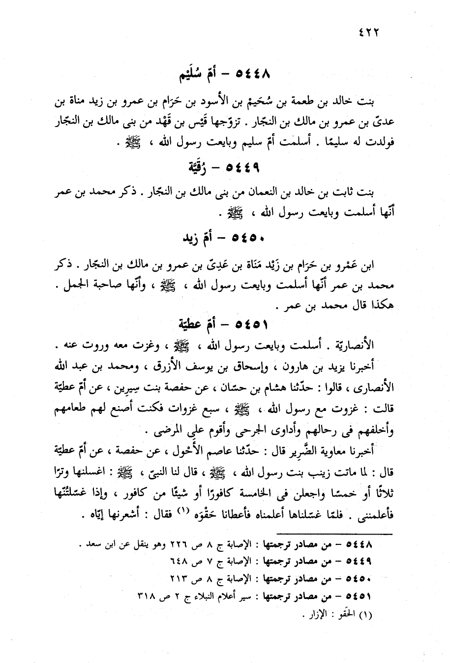 ٥٤٥٠ - من مصادر ترجمتها: الإصابة ج ٨ ص ٢١٣
