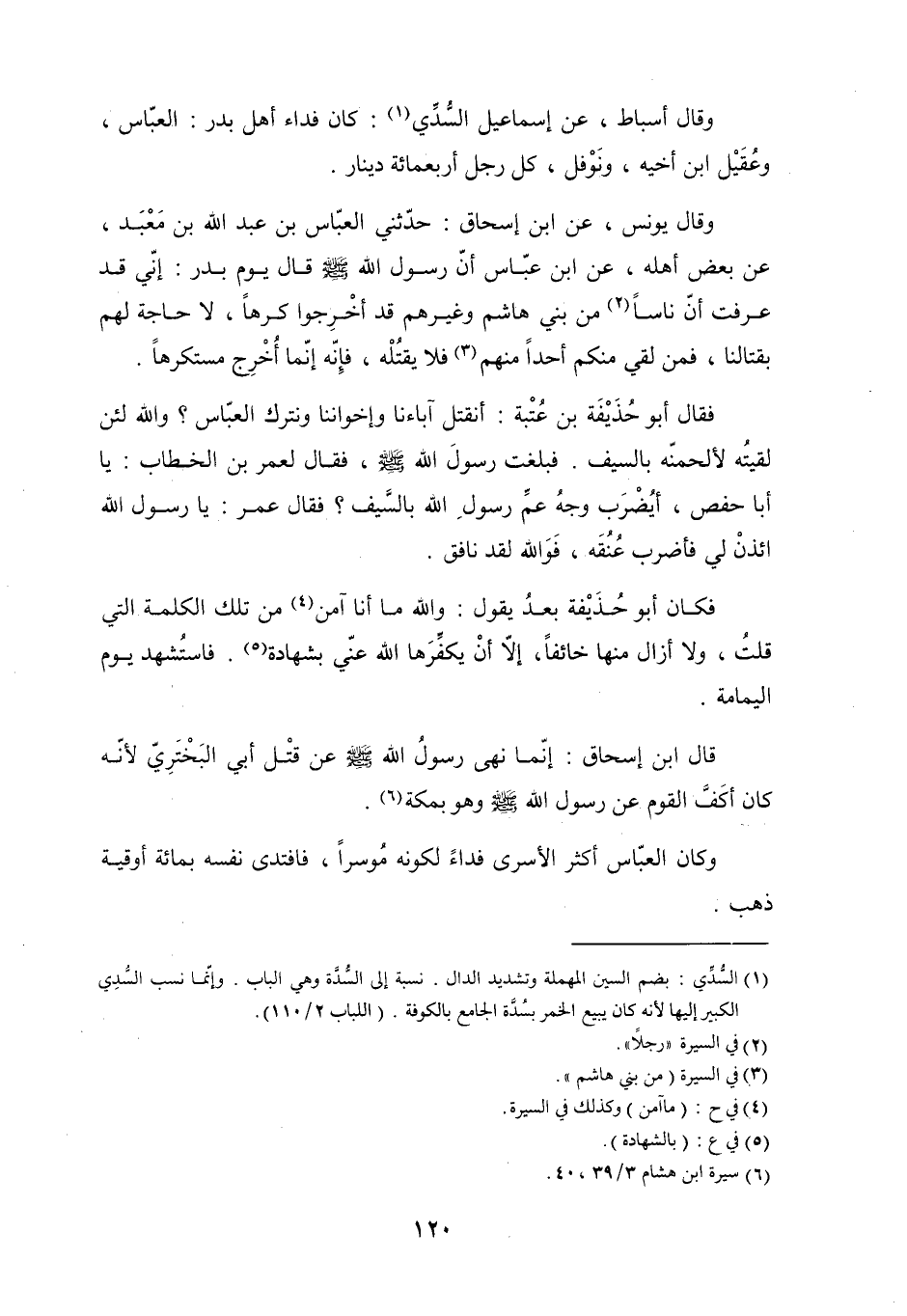 [6] طبقات ابن سعد 1/ 191 وفيه قال ابن سعد: فذكرت هذا الحديث لمحمد بن عمر فقال: ليس يعرف أهل العلم ببلدنا أنّ إسرافيل قرن بالنبيّ صلّى الله عليه وسلّم، وأن علماءهم وأهل السيرة منهم يقولون: لم يقرن به غير جبريل من حين أنزل عليه الوحي إلى أن قبض صلّى الله عليه وسلّم، نهاية الأرب 16/ 175.