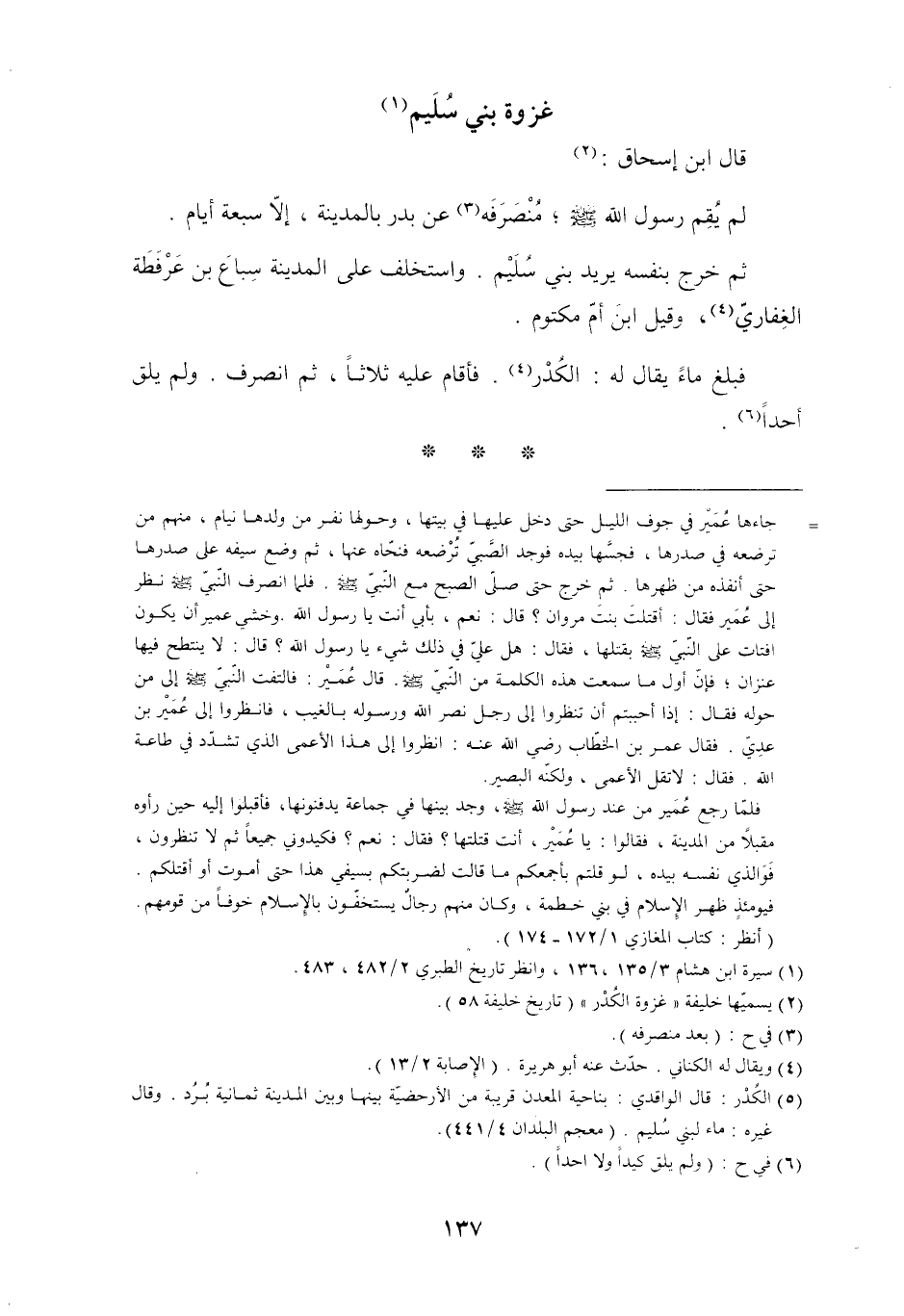 [1] سيرة ابن هشام 1/ 289، السير والمغازي 139، نهاية الأرب 16/ 717، عيون الأثر 1/ 95.