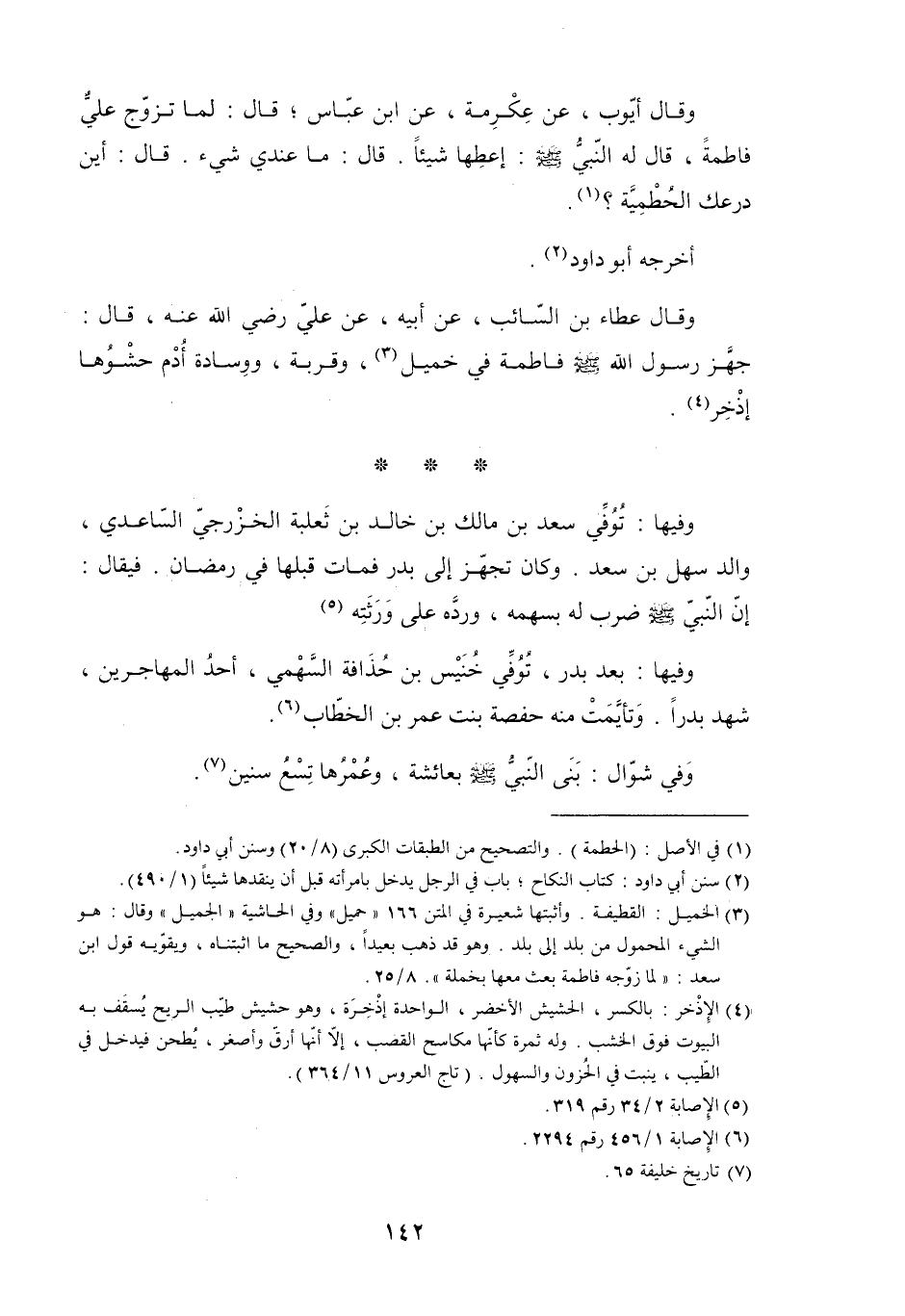 [3] أخرجه البخاري (3862) في مناقب الأنصار باب إسلام سعيد بن زيد، و (3867) فيهما، و (6942) في الإكراه: باب من اختار الضرب، والقتل، والهوان على الكفر، ورواية البخاري الأولى، «قتيبة بن سعد، حدّثنا سفيان عن إسماعيل، عن قيس، قال: سمعت سَعِيدِ بْنِ زَيْدِ بْنِ عَمْرِو بْنِ نُفَيْلٍ في مسجد الكوفة، يقول: والله لقد رأيتني، وإنّ عمر لموثقي عَلَى الإِسْلامِ، قَبْلَ أَنْ يُسْلِمَ عُمَرُ، وَلَوْ أَنَّ أَحَدًا ارْفَضَّ لِلَّذِي صَنَعْتُمْ بِعُثْمَانَ لَكَانَ محقوقا أن يرفض» . وفي الرواية الثانية «انقض» بالنون والقاف.