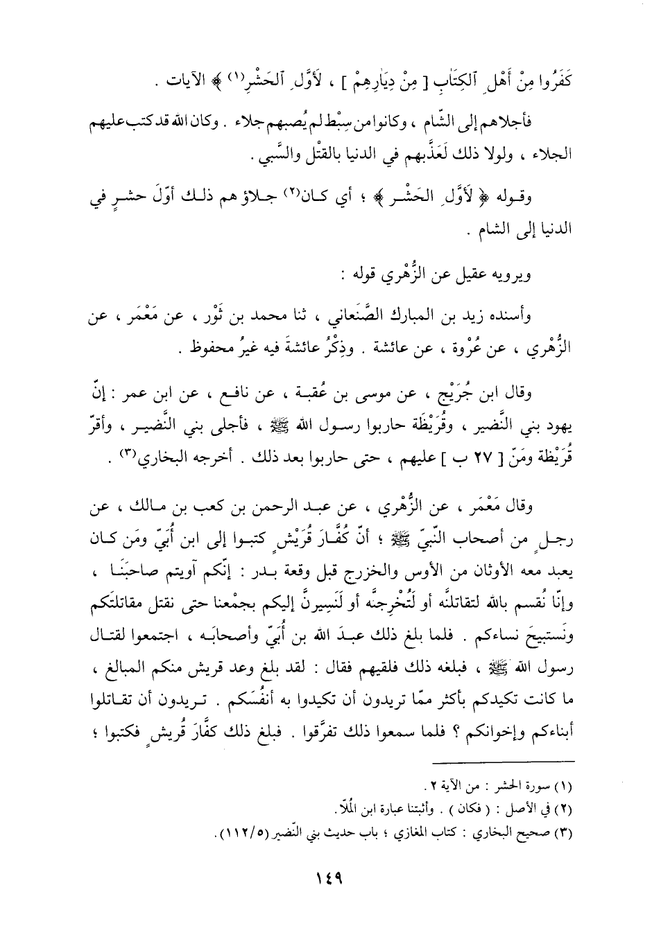 [2] التاريخ الكبير ج 7/ 51 في ترجمة عقيل بن أبي طالب، رقم 230 وانظر السير والمغازي 154، 155.