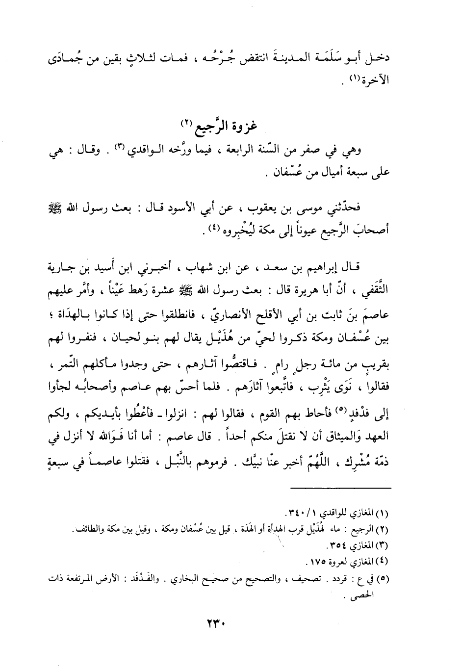 [5] صحيح البخاري 4/ 247 في مناقب الأنصار، باب قصّة أبي طالب، و 5/ 208 في تفسير سورة براءة، و 6/ 18 في تفسير سورة القصص، و 7/ 229 في كتاب الأيمان والنذور، باب إذا قال والله لا أتكلّم اليوم فصلّى أو قرأ أو سبّح أو كبّر أو حمد أو هلّل فهو على نيّته. وأخرجه أحمد في مسندة 5/ 433، وانظر عيون الأثر 1/ 131- 132.