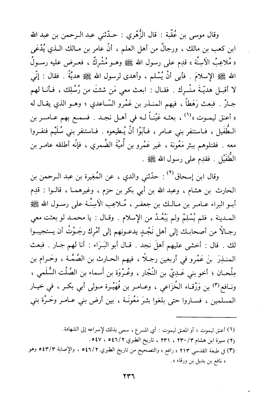 [2] سيرة ابن هشام 2/ 166، والسير والمغازي 243.