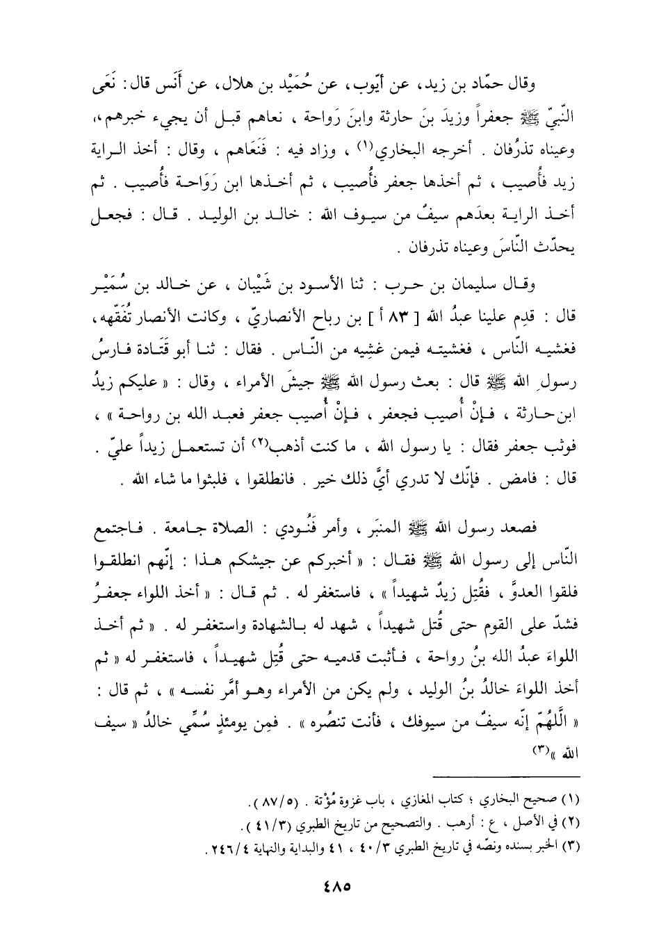 [1] مرّ الحديث قبل الآن، وهو في صحيح مسلم (2150) وطبقات ابن سعد 1/ 364، وتهذيب تاريخ دمشق 1/ 338.