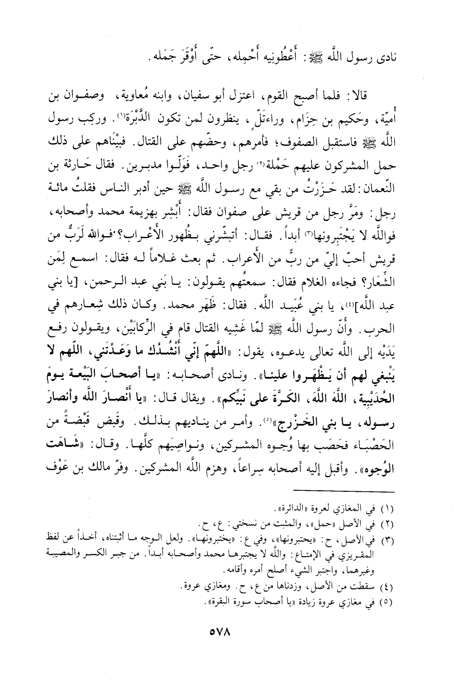 [2] طبقات ابن سعد 2/ 284، وسيرة ابن هشام 4/ 262، والطبري 3/ 212.