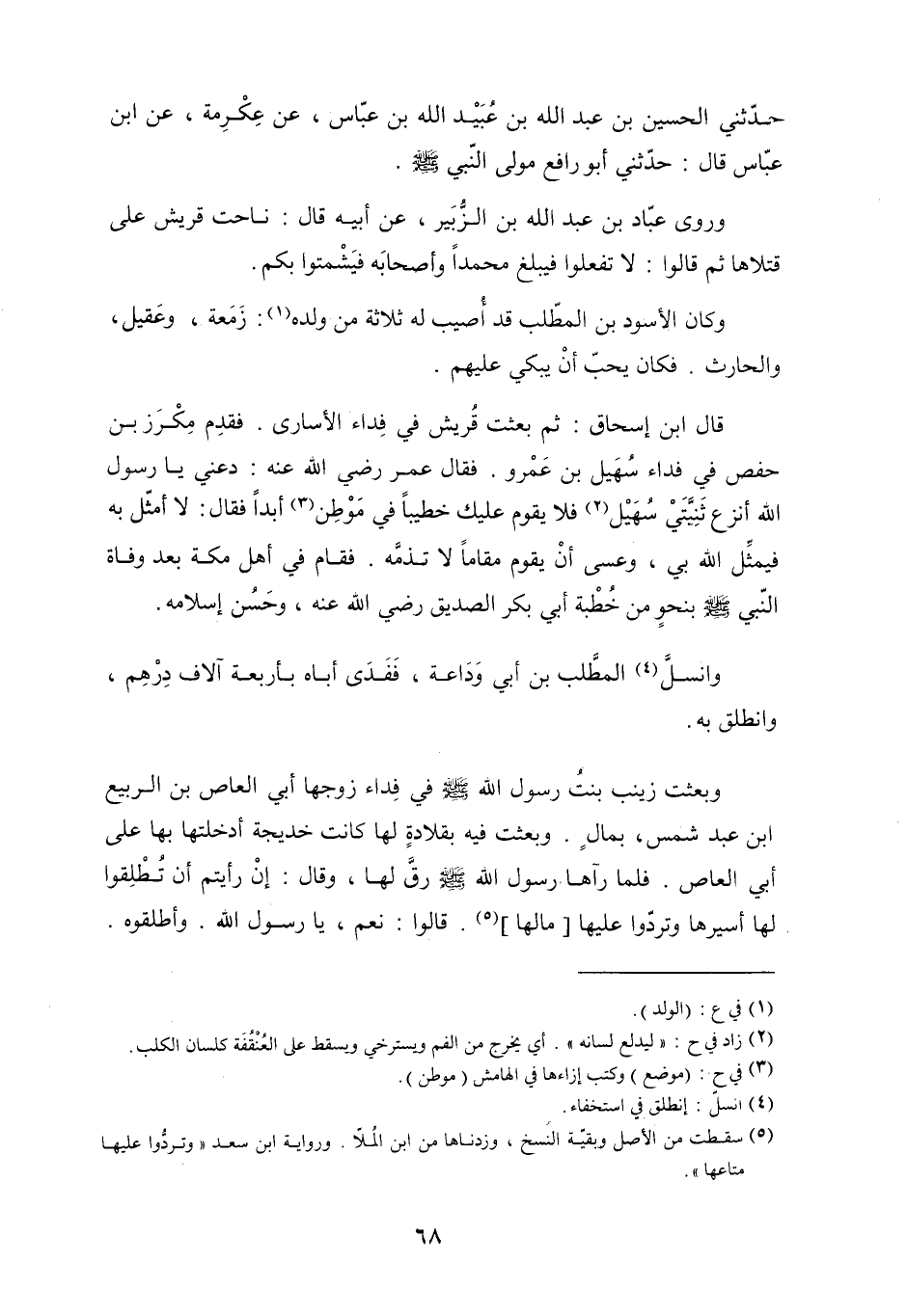 [5] العبارة عند الأزرقي وابن كثير: «ثم أمر (ثم أخرج) سيد كل قبيلة فأعطاه ناحية من الثوب» .