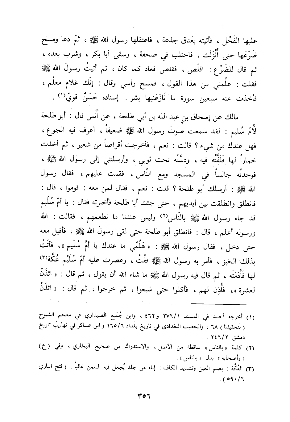 [2] سيرة ابن هشام 4/ 242، طبقات ابن سعد 2/ 89 تاريخ الطبري 3/ 158، نهاية الأرب 17/ 209، 210، البداية والنهاية 4/ 179، عيون الأثر 2/ 108، 109.
