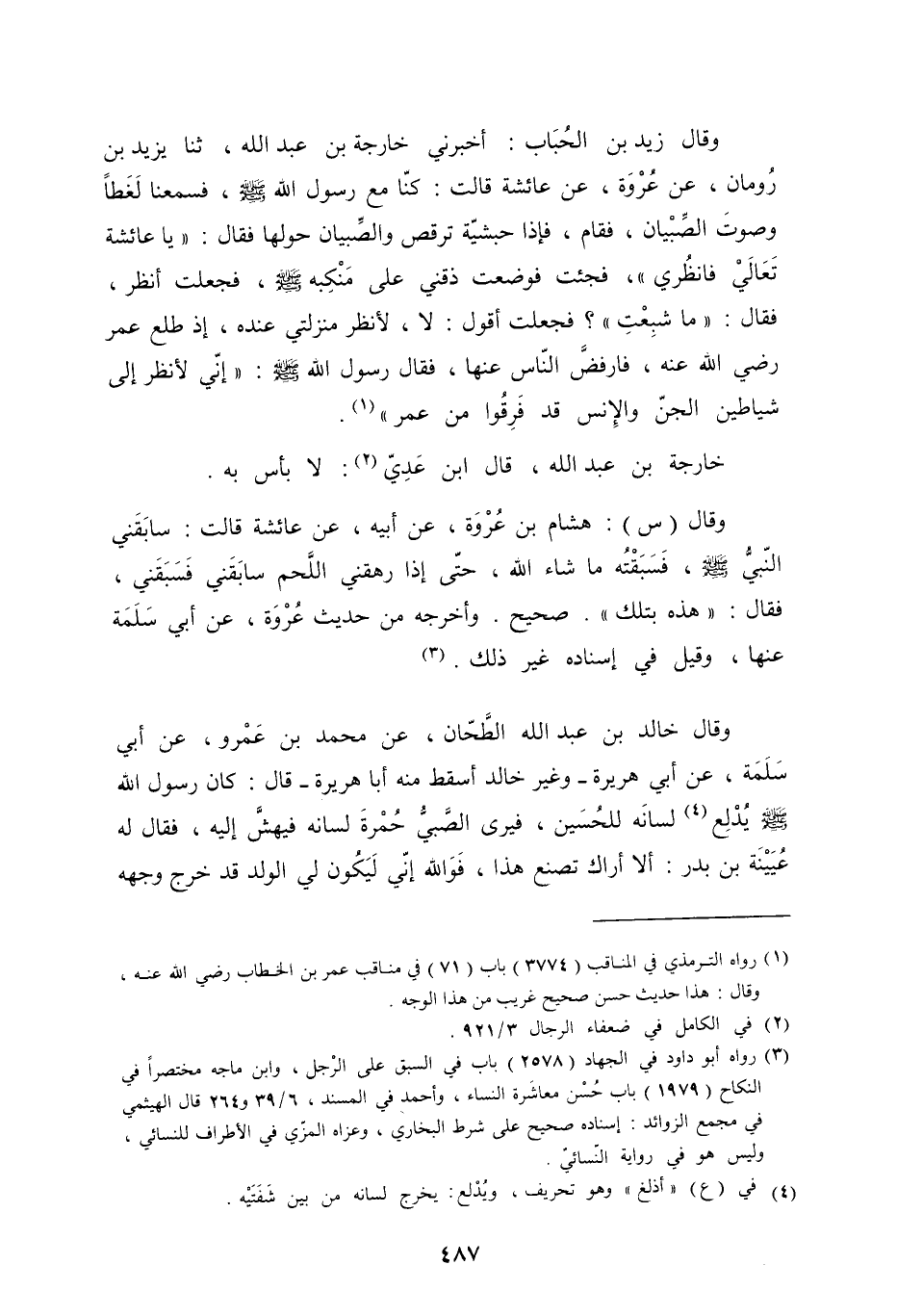 [3] صحيح البخاري: كتاب الجنائز، باب من جلس عند المصيبة يعرف فيه الحزن. وصحيح مسلم (1935) كتاب الجنائز، باب التشديد في النياحة. وانظر سيرة ابن هشام 4/ 73 برواية عبد الرحمن بن القاسم بن محمد، عن أبيه، عن عائشة.