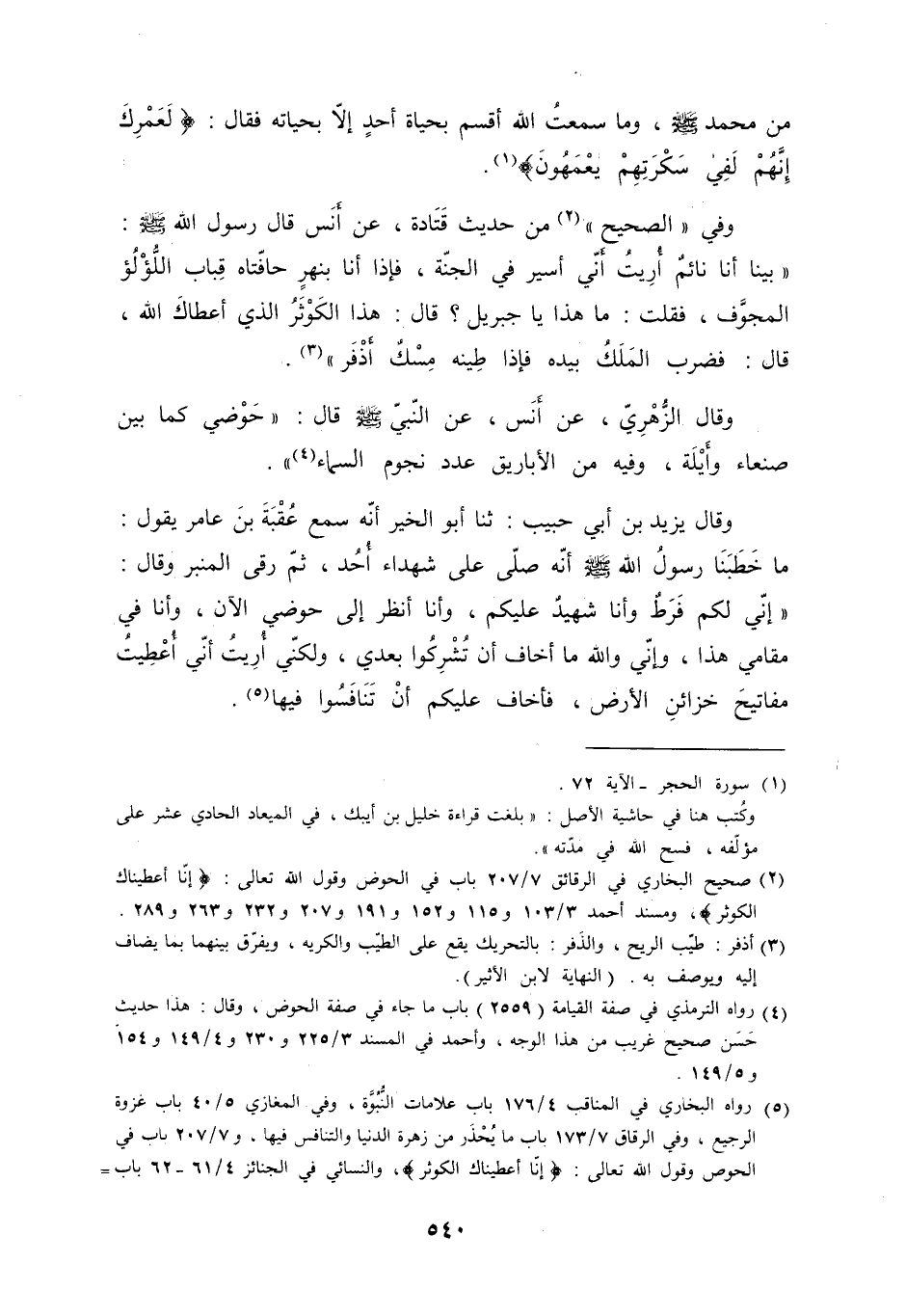 أمَّنْتُهُ. ثُمَّ جَلَسْتُ إِلَى رَسُولِ اللَّهِ صَلَّى اللَّهُ عَلَيْهِ وَسَلَّمَ فَأَخَذْتُ بِرَأْسِهِ وَقُلْتُ: وَاللَّهِ لا يُنَاجِيهِ اللَّيْلَةَ أَحَدٌ دُونِي. فَلَمَّا أَكْثَرَ فيه عمر، قلت: مهلا يا عمر، فو الله مَا تَصْنَعُ هَذَا إِلا لأَنَّهُ رَجُلٌ مِنْ بَنِي عَبْدِ مَنَافٍ. وَلَوْ كَانَ مِنْ بَنِي عَدِيِّ بْنِ كَعْبٍ مَا قُلْتَ هَذَا. فَقَالَ: مهلا يا عبّاس، فو الله لإسلامك يوم أسلمت كان أحبّ إليّ من إسلام الخطّاب لو أسلم. وما ذاك إلّا لأنّي قد عرفت أنّ إسلامك كَانَ أَحَبَّ إِلَى رَسُولِ اللَّهِ صَلَّى اللَّهُ عَلَيْهِ وَسَلَّمَ مِنْ إِسْلامِ الْخَطَّابِ لَوْ أَسْلَمَ. فَقَالَ رَسُولُ اللَّهِ صَلَّى اللَّهُ عَلَيْهِ وَسَلَّمَ: اذْهَبْ بِهِ فَقَدْ آمَنَّاهُ، حَتَّى تَغْدُوَ بِهِ عَلَيَّ الْغَدَاةَ، فَرَجَعَ بِهِ الْعَبَّاسُ إِلَى مَنْزِلِهِ [1] .