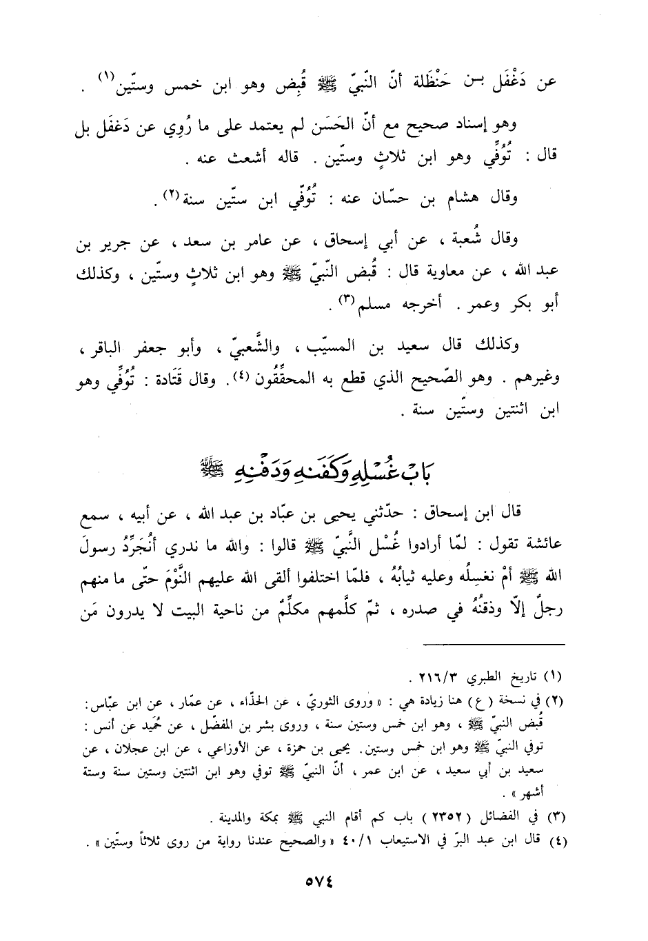 [4] انظر سيرة ابن هشام 4/ 124، الطبري 3/ 74، المغازي لعروة 215، طبقات ابن سعد 2/ 150، 151 نهاية الأرب 17/ 328.